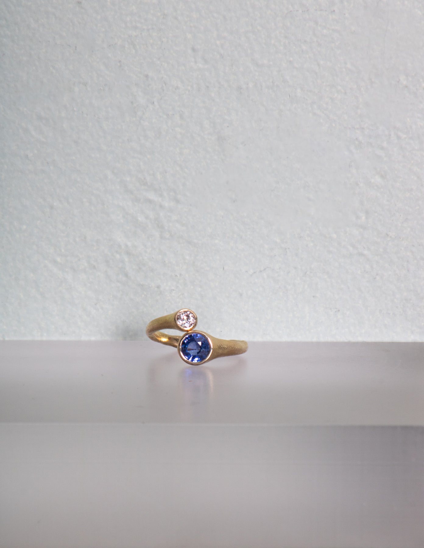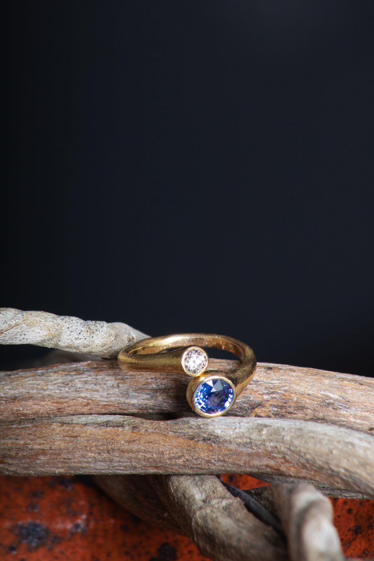 Blue Sapphire and Diamond Overlapping Ring (B494)