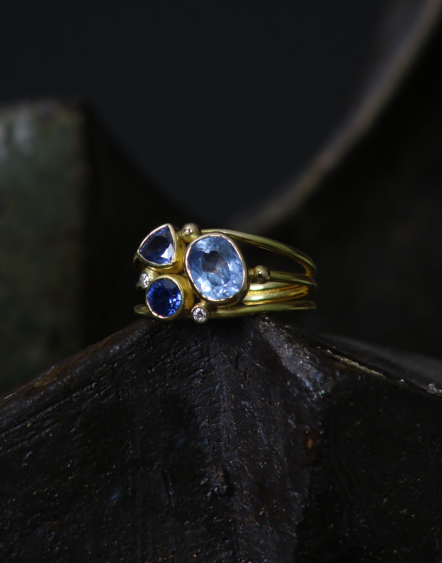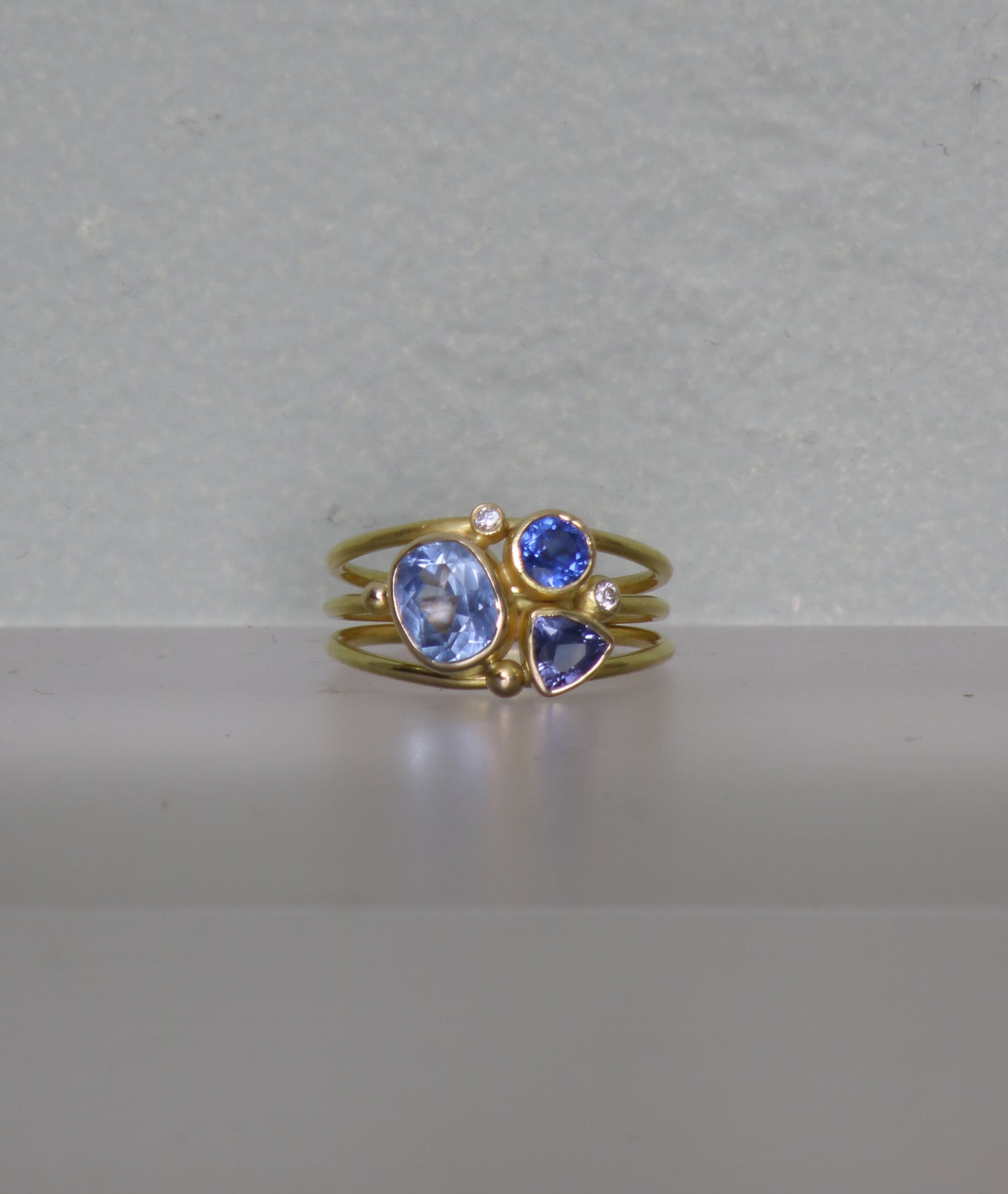 Mixed Sapphire, Multi-Band Gold Ring (B307)